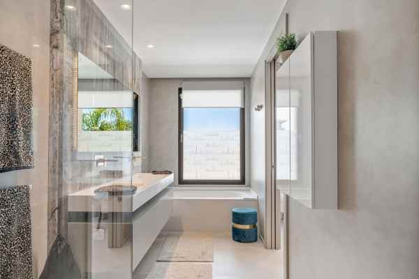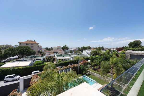 Welcome to this modern and very well built house in the lower Nueva Andalucia area. As you enter you are greeted with a large open kitchen that leads to the dining and living area, from here you can access the large covered terrace and onto the pool area with ample space for sunbathing and with an outdoor shower. On the main floor you have a bedroom onsuite currently used as an office. On the first floor you have 3 bedroom onsuite, all with access to a covered terrace. From here you have stairs leading onto the solarium which has been fitted with solar panels yet leaving space to create an entertaining space. In the basement floor floor you have the laundry area, a 2nd guest toilet, a bedroom suite, a large room that could be used as a cinema room etc and lastly a large garage for up to 4 cars. All floors are accessed by stairs or an elevator. The technology in the house is modern with water based underfloor heating powered by aerothermic system, the ac is thorugh the Airzone system, water filters & solar panels make this house very efficient to live in. A house in a very central position makes this a perfect all year living or a holiday home with the added bonus of being an attractive rental property due to its size and location.