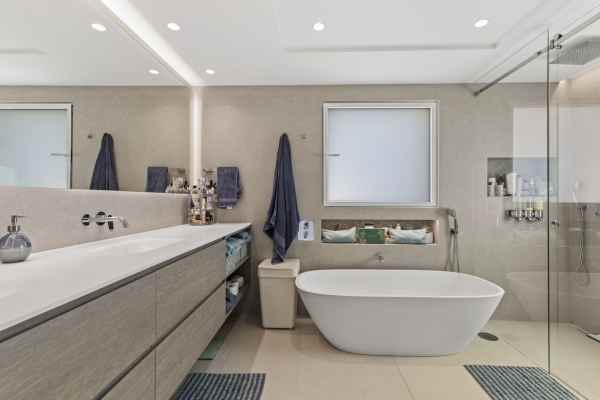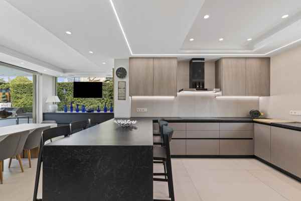 The villa is equipped with every modern comfort, including underfloor heating throughout, central air conditioning, an office with a feature skylight, and a comprehensive alarm system. Some windows also feature discreet security bars for added peace of mind.