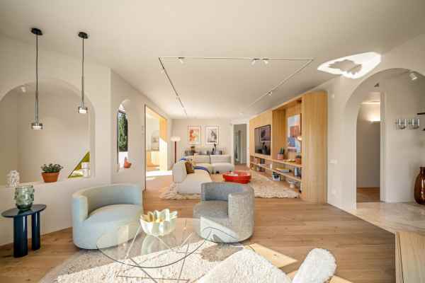 The interiors are fully furnished with handpicked design pieces from leading European manufacturers, reflecting a commitment to comfort and style. Saba Italia offers modular sofas that embody softness and freedom of form, while Ditre Italia and Twils supply beds with tailored elegance and orthopedic comfort. Zanotta, a symbol of timeless Italian design, and Mogg, with its bold artistic objects, bring personality to the spaces. Northern European brands such as &Tradition (Denmark), Punt Mobles (Spain), Layered (Sweden), Hay (Denmark), and Ferm Living (Denmark) contribute accessories, rugs, and accents that emphasize Scandinavian clarity and Mediterranean warmth.