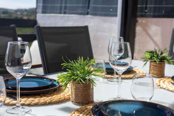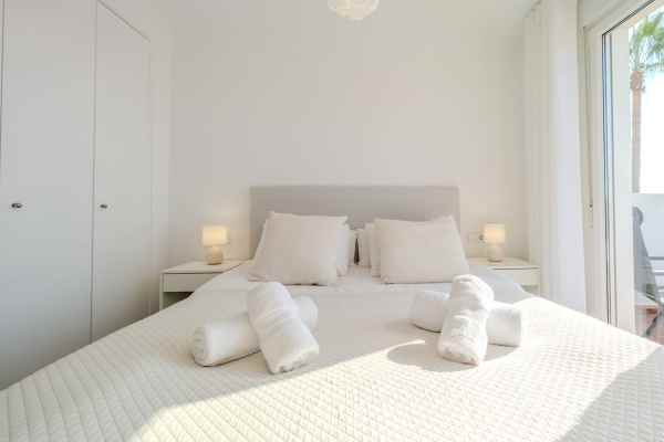 The **modern kitchen comes fully equipped, and both bedrooms are generously sized, the master featuring an en-suite bathroom and direct access to a private terrace.