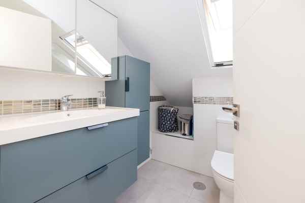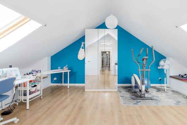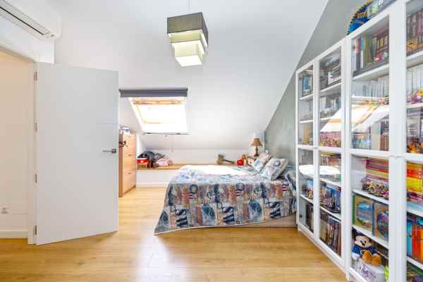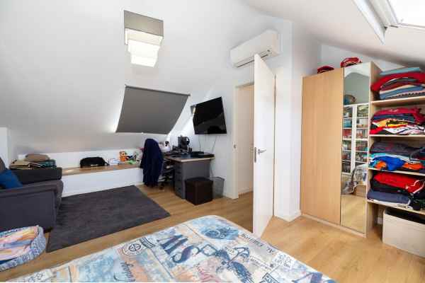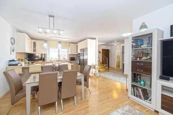 With a built area of 238 m² on a 200 m² plot, the property is distributed across four levels, maximising space and natural light. It features six bedrooms, four bathrooms (with the possibility of adding a fifth), and two spacious garages. The main floor includes a bright and open living area, a separate dining room, and a modern fully equipped kitchen. The master bedroom comes with a large dressing room that could easily be converted into an additional bedroom if desired.