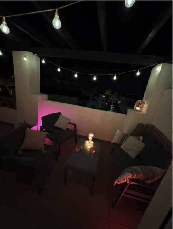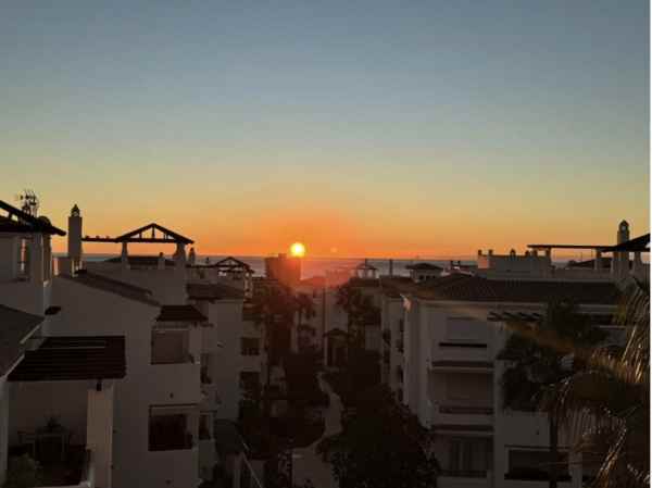 Elevate your lifestyle in this sophisticated top-floor penthouse apartment within the prestigious Residencial Duquesa Phase 1, a gated urbanisation in the charming coastal enclave of La Duquesa, Manilva. Offering 2 bedrooms and 2 bathrooms, this fully furnished property blends Mediterranean elegance with modern convenience, making it an ideal retreat for year-round living, holidays, or investment. Perched at a higher level than surrounding buildings for ultimate privacy, the east-facing orientation ensures breathtaking sunrises directly over the sea, with abundant morning sun on the terrace until around 15:30 in summer, transitioning to delightful afternoon shade – perfect after a day at the beach.