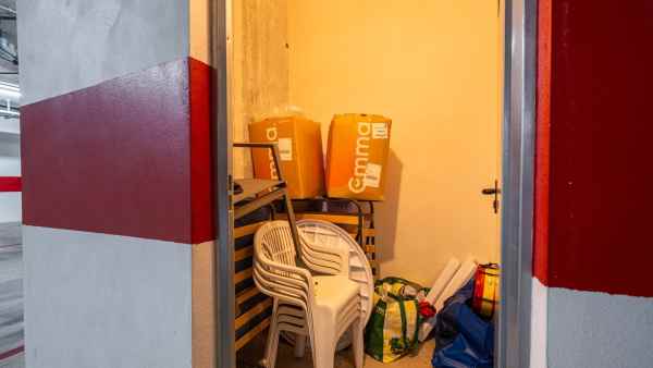 The apartment comes with a private garage space and an additional storage unit, both conveniently accessed by lift or stairs. The community also offers a shared bicycle storage room.