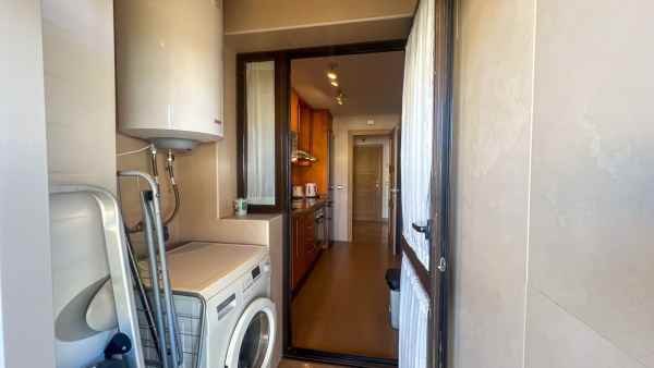 Additional features include central air conditioning (hot and cold) throughout, electric blinds, an electric awning on the main terrace, a video intercom system, and one parking space in the garage, making this apartment a perfect turnkey option.