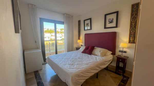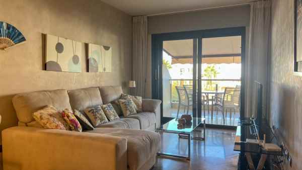 This modern apartment is sold fully furnished and designed for comfortable living. The property features a spacious living and dining area that opens onto a terrace with views of the park and the stunning Sierra Bermeja mountains. A fully fitted kitchen with a dedicated laundry area. Both bedrooms offer en-suite bathrooms and private balconies.