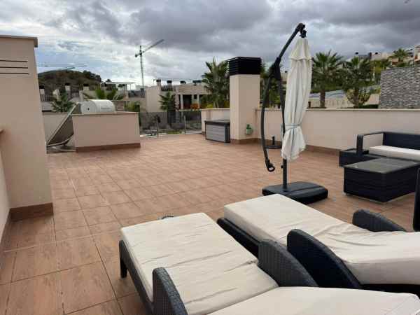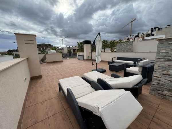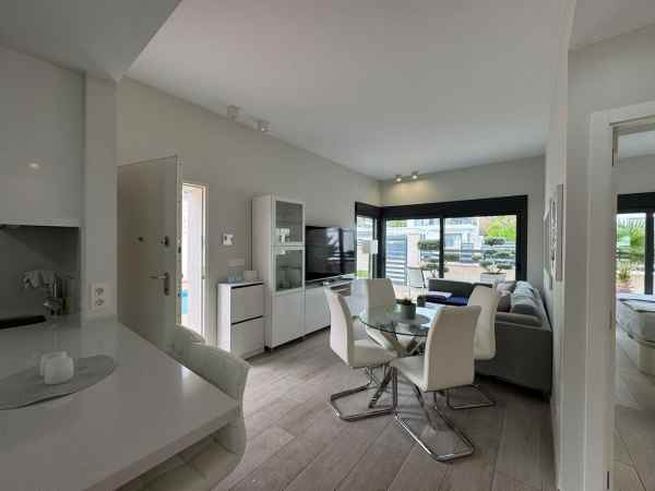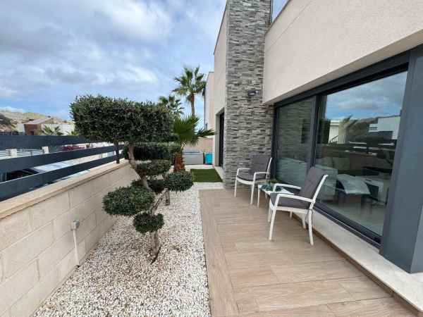 Discover this spectacular detached villa built in 2019, with a constructed area of 109 m², located in one of the most exclusive and peaceful areas of Finestrat, just 5 km from the Mediterranean beaches. This property combines luxury, comfort, and privacy in a paradisiacal environment, ideal for those seeking quality of life and tranquility.The villa features three spacious bedrooms and three elegant bathrooms, offering space and comfort for the whole family. The living room is bright and cozy, perfect for sharing unforgettable moments, while the open-plan kitchen is fully equipped to facilitate modern and functional living.Outside, the villa boasts its private pool, surrounded by a beautiful garden with palm trees and lush vegetation, creating an oasis of relaxation and privacy. Additionally, it has a solarium with stunning sea views, where you can enjoy Mediterranean sunsets and the sea breeze.The property is part of a community that offers a large green area, community pool, jacuzzi, sauna, and a fully equipped gym, combining luxury and wellness in one place.Finestrat is a charming and very quiet place, surrounded by nature and open spaces, ideal for those seeking peace and privacy. Very close by is a golf course, perfect for sports enthusiasts, and just a few minutes from the beaches. The area is safe, pleasant, and offers a relaxed atmosphere without the hustle and bustle of the city.Built with high-quality materials, modern design, and luxury finishes, this villa is ideal for those seeking a sophisticated and exclusive lifestyle, enjoying the sun, nature, and sea views. A unique opportunity to acquire a property that combines luxury, comfort, and a privileged location.Don't miss the chance to live in this gem in Finestrat, a place where every day feels like a dream vacation.
