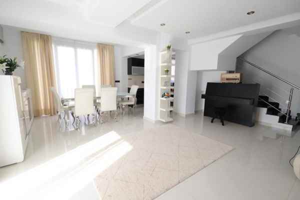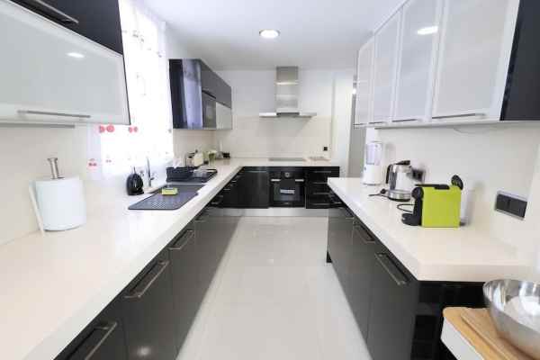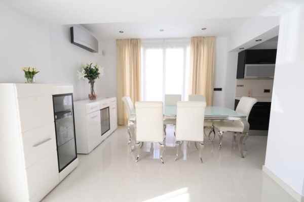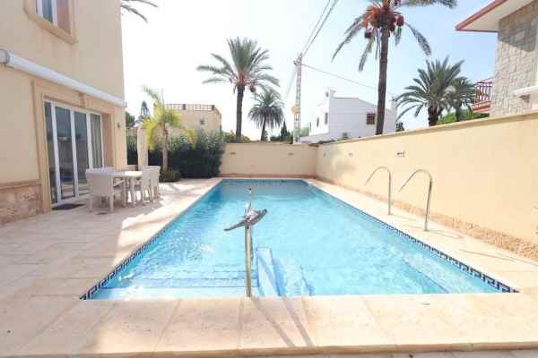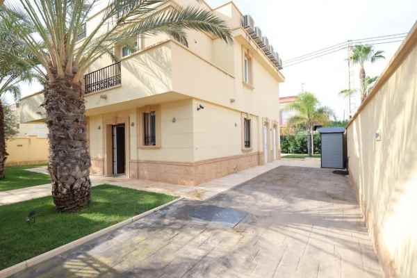 Cabo Roig Detached villa on a 415 m² corner plot overlooking two streets.. This modern, two-story home offers a contemporary and functional design, measuring 222 m². It features 4 spacious bedrooms and 3 bathrooms, a bright living-dining room with a semi-integrated kitchen, a private pool, a driveway, and a large private solarium, perfect for enjoying the sun year-round.. Sold fully furnished and equipped with air conditioning. Located in one of the most exclusive areas of the coast.