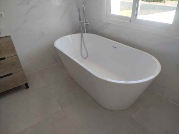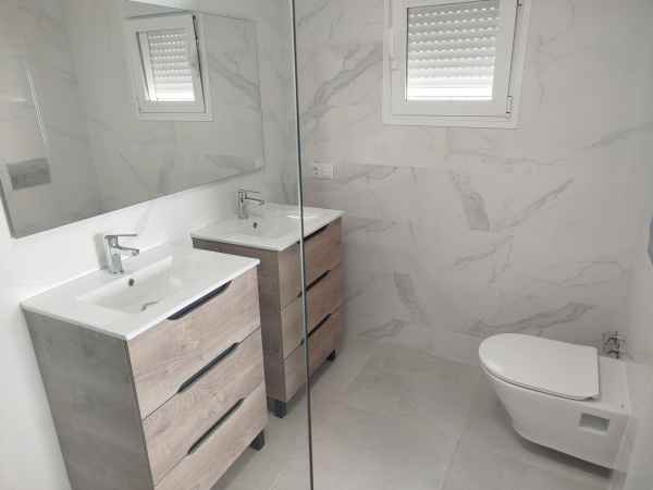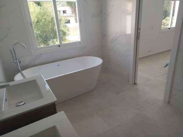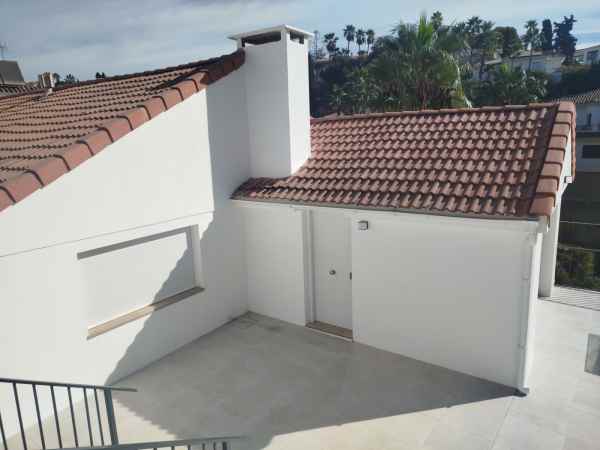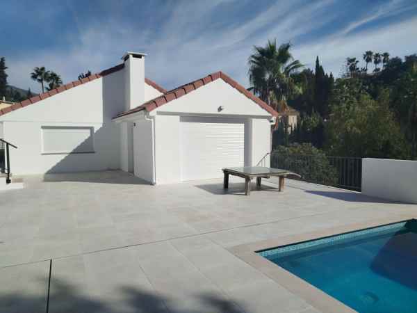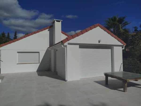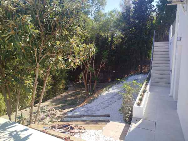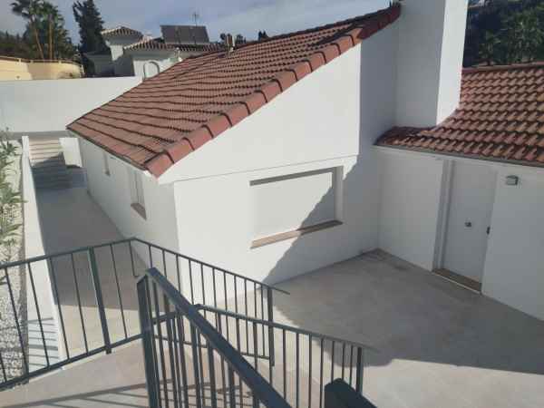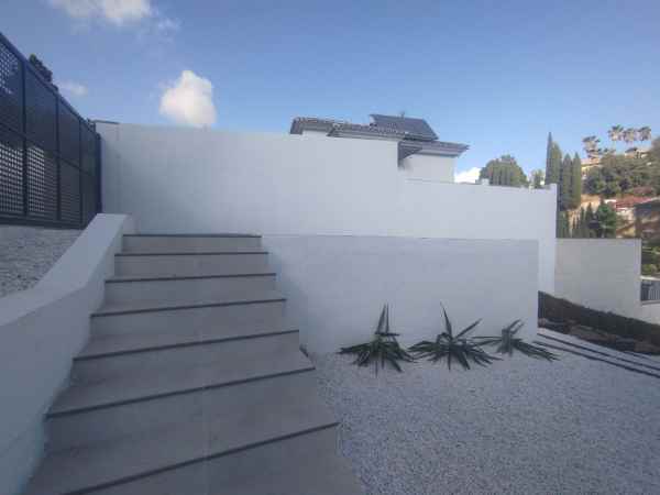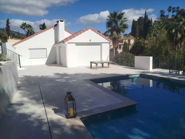 Totally renovated to a high standard and insulated with thermal insulation,you have this luxury 4 bed 4 bath villa in a quiet street in Campo Mijas with landscaped terraced gardens electric gated secure parking electric entrance gate with video entry. There are two large terraces with one surrounding the newly constructed pool. The house has two separate levels with the living room / dining room modern open plan kitchen , 2 large bedrooms both with ensuite shower and bathrooms with under floor heating and guest toilet on the entrance level with another independent bedroom with ensuite showerroom plus a large studio apartment with ensuite and storeroom on the lower level, electric blinds all water electric sewage pipes and wires are new, easy local access to all the bars restaurants of El Coto and Fuengirola set a very quiet area with video entrance and fully alarmed .