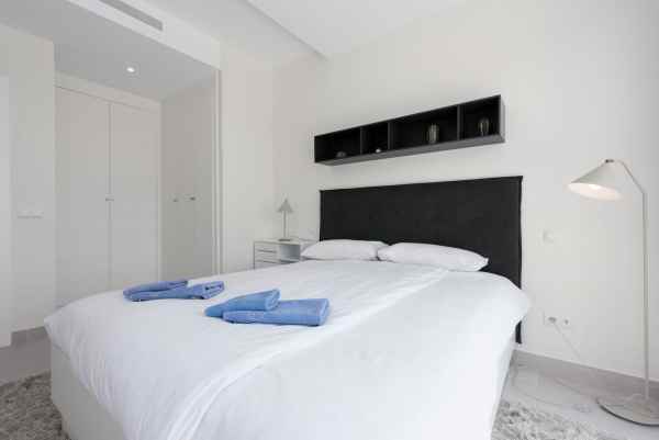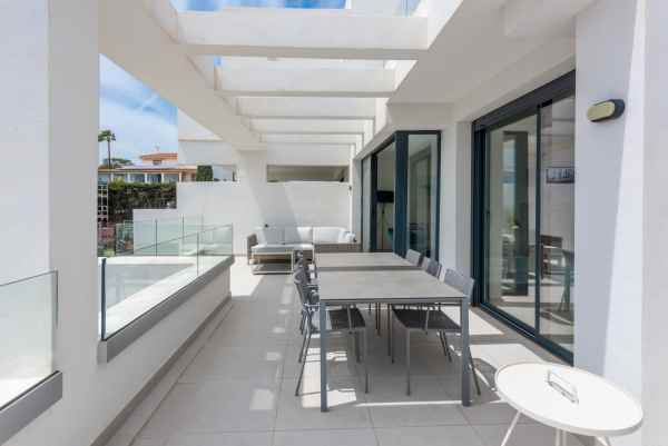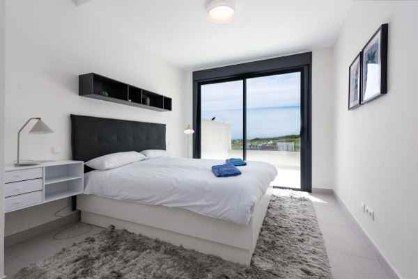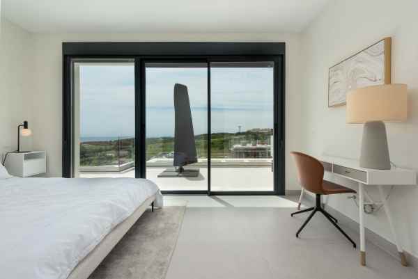 Designed for comfort and modern living, this elegant home features three spacious bedrooms and two contemporary bathrooms, including a master suite with a private terrace and en-suite bathroom. The open-plan kitchen and bright living area flow seamlessly onto two generous terraces, where you can relax and take in panoramic views of the golf course, the Mediterranean Sea, and the surrounding mountains.