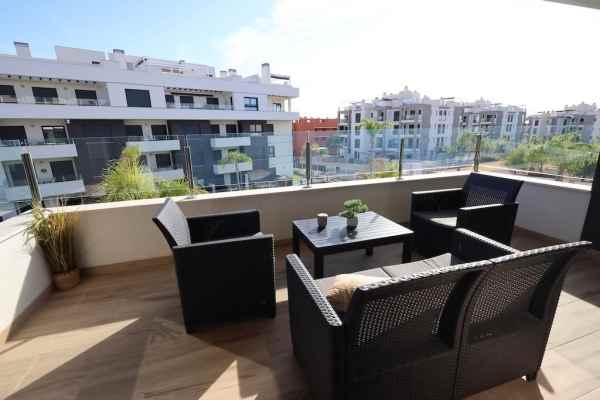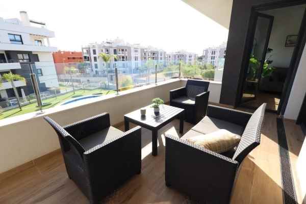 Modern & Move-In Ready Apartment in Villamartin – Costa Blanca South. . Located in the highly sought-after area of Villamartin on the Costa Blanca South, this immaculately presented second-floor apartment with two bedrooms and two bathrooms offers a luxurious living experience in a central location.. . The property is part of the popular Residential Valentino Golf 3, a modern complex featuring a contemporary design, spacious terraces, and a smart layout that ensures natural light and comfort all year round.. . The communal facilities include a large swimming pool with jacuzzi, extensive green areas, a playground, and a gym.. . Features of Valentino Golf 3. . Close to the town centre, golf courses and the beach. . Spacious terraces. . Swimming pool and jacuzzi. . Gym and playground. . Private parking for each apartment. . Layout & Comfort. . Two spacious bedrooms with built-in wardrobes. . Modern open kitchen, including dishwasher and washing machine in the utility area on the balcony. . Living room with direct access to a sunny terrace overlooking the communal pool. . Extras. . Central air conditioning and heating. . Fully furnished and equipped (excluding personal items). . Ideally located just a 15-minute walk from the lively Villamartin Plaza, offering a wide choice of bars and restaurants. The charming Villamartin clubhouse, decorated with traditional Spanish tiles and featuring a sun terrace, is also within easy walking distance.. . Within a short drive, you’ll reach the impressive Zenia Boulevard shopping centre and the beautiful sandy beaches of Orihuela Costa, including La Zenia, Cabo Roig, Punta Prima and Playa Flamenca.. . Golf lovers will appreciate the proximity to the top courses Villamartin, Campoamor, Las Ramblas and Las Colinas, while families can enjoy a fun day out at Greenlands Adventure Golf, located nearby.