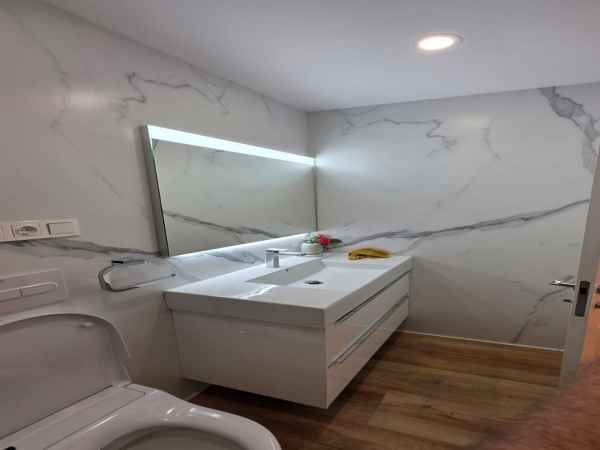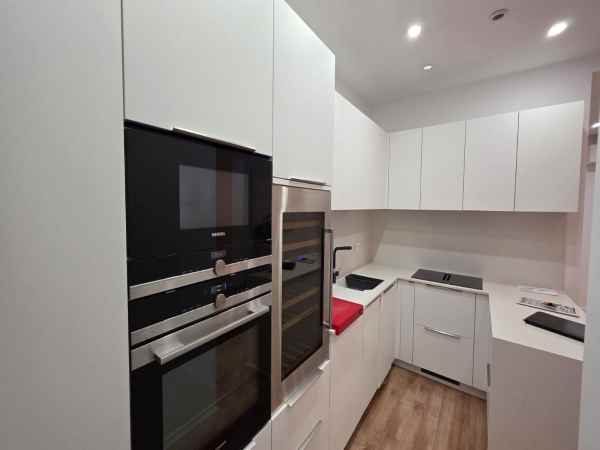 The apartment features three spacious bedrooms and two stylish bathrooms, all designed with a fresh, contemporary touch. The recent renovation includes double-glazed windows for excellent sound and temperature insulation, ensuring year-round comfort and peace.