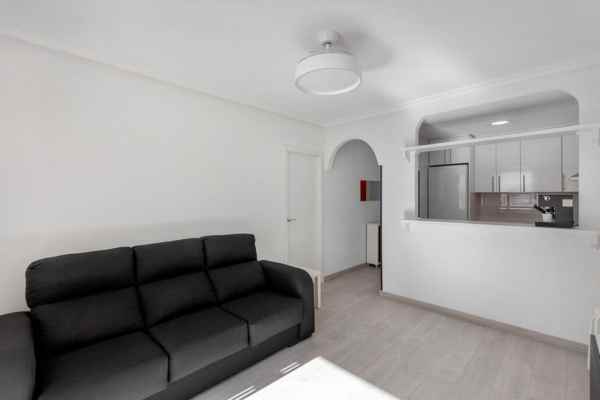 The apartment is sold fully furnished and equipped with appliances, air conditioning, and an alarm system, ready to move in or start renting out immediately. It also includes a private parking space, a highly valued feature in this popular coastal area.