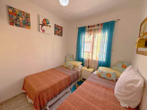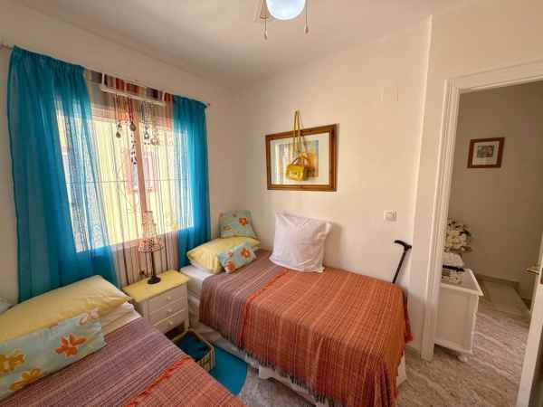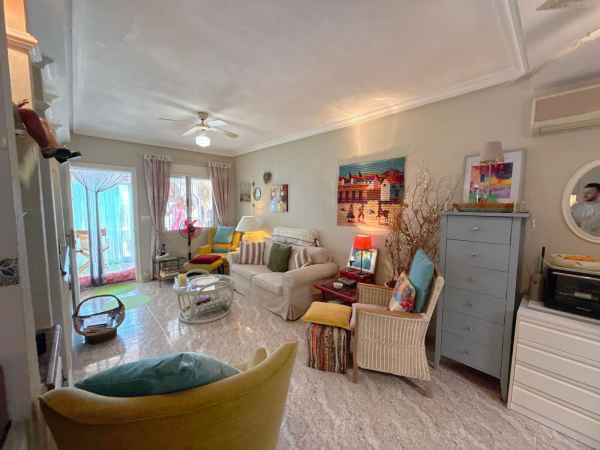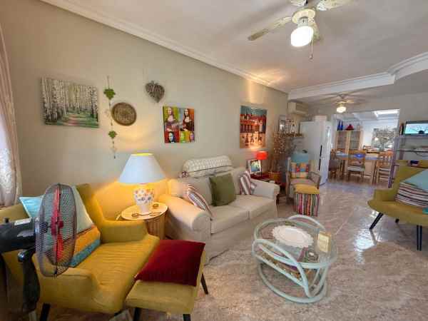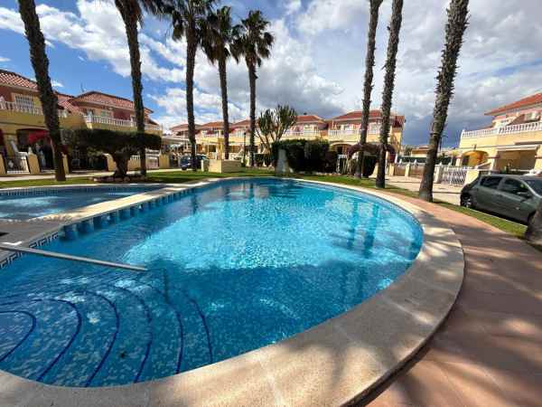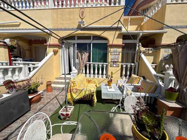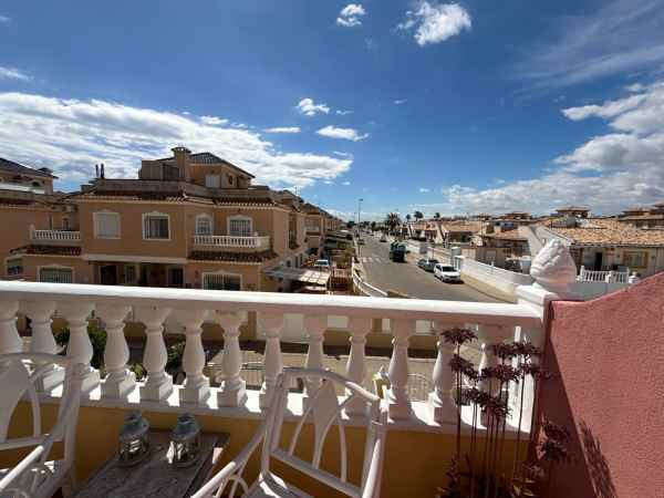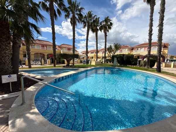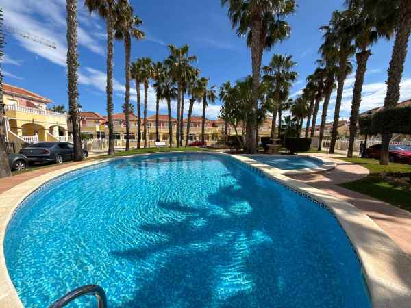 This is a fantastic south facing tonwhouse in La Regia which is a 10 minute walk to La Zenia and a little less to the Cabo Roig strip, the garden is south facing with sun all day and the property has a sun room for the winter months. The property has a lovely lounge with an american open plan kitchen with a lovely dining area to the rear and the downstairs also has a WC toilet. The first floor has two double bedrooms and a full family bathroom with a walk in shower and off the main bedroom you have a decent size balcony. This townhouse is in a fantastic location and is walking distance to Zenia Boulevard and Cabo Roig strip and also Cabo Roig beach. The Property is also part of a beautiful community with a lovely pool area and gardens.