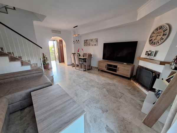Discover unparalleled coastal serenity in this magnificent semi-detached townhouse within the prestigious Sierramar III urbanisation, a secure gated enclave in Marbella's exclusive Huerta del Prado-La Montúa district, nestled against the foothills of the iconic La Concha mountain on the renowned Costa del Sol. This family-friendly haven—boasting lush communal gardens, two sparkling swimming pools (one for adults, one for children), a paddle tennis court, and 24-hour security—offers the perfect fusion of tranquillity and convenience. Just a short stroll from local amenities like pharmacies, bars, restaurants, and schools, it's a mere 600 metres from the city bus station with direct links to Málaga Airport, and only 5-10 minutes' drive from Marbella's vibrant centre, golden beaches, and the glamour of Puerto Banús. Embrace the microclimate of over 300 sunny days a year, with easy access to hiking trails, international schools, and world-class golf courses.