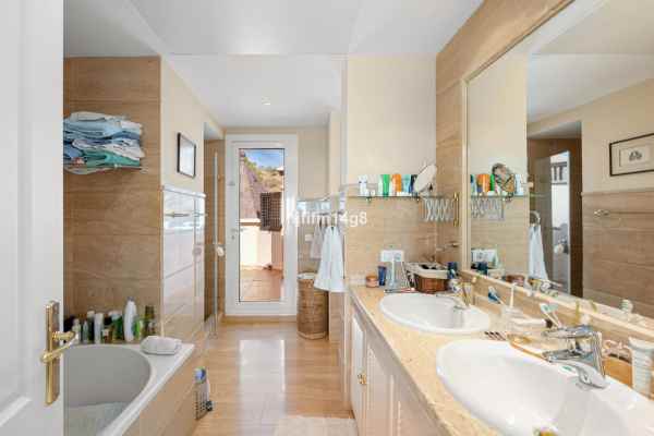 This impeccably presented three-bedroom duplex penthouse for sale in Albatross Hill, Nueva Andalucia, offers a perfect blend of luxury, comfort, and breathtaking Mediterranean views. Situated within the prestigious gated community of Albatross Hill in the heart of the Nueva Andalucia Golf Valley, this property enjoys 24-hour security and a wealth of resort-style amenities, including beautifully landscaped gardens, three outdoor swimming pools, an indoor heated pool, a gym, sauna, and a tennis court. The location is ideal for golf enthusiasts, with world-class courses such as Los Naranjos and Las Brisas nearby, while the vibrant marina of Puerto Banus and the area’s stunning beaches are just a short drive away.