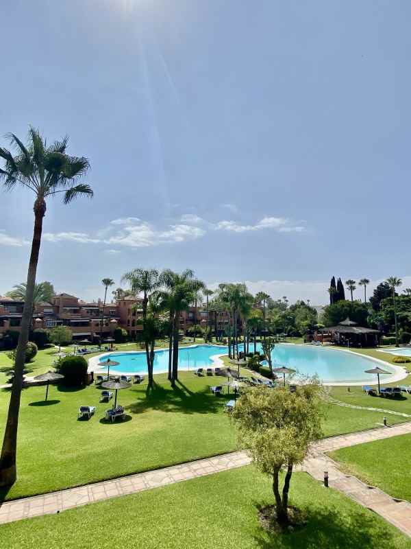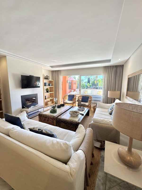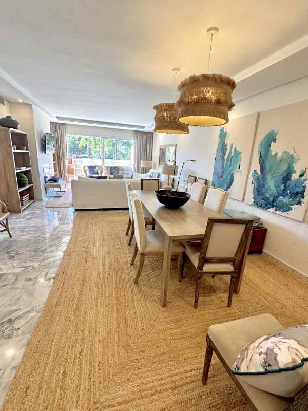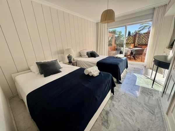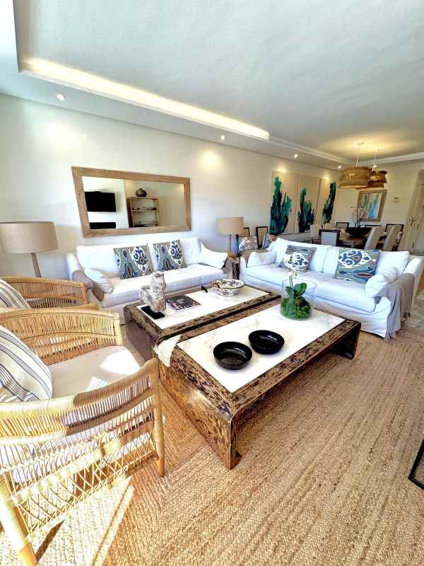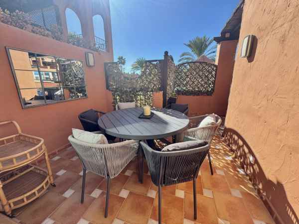 UNIQUE - BEAUTIFUL, RENOVATED AND IMPECCABLE. Spacious 4-bedroom duplex penthouse located in Alhambra del Golf, one of the most emblematic developments in Guadalmina Baja. It has spacious rooms and two terraces on both floors, totalling 70 metres. On the lower floor there is a large living/dining room with access to the semi-covered terrace, facing south and overlooking the communal gardens, beach, swimming pools and children's area of the development. It also has a fully equipped kitchen with a laundry area and two bedrooms, both with en-suite bathrooms, as well as a guest toilet. On the upper floor is the master bedroom, with high vaulted ceilings and numerous wardrobes, with its en-suite bathroom and access to a large covered terrace. On this same floor there is another bedroom with a full bathroom.