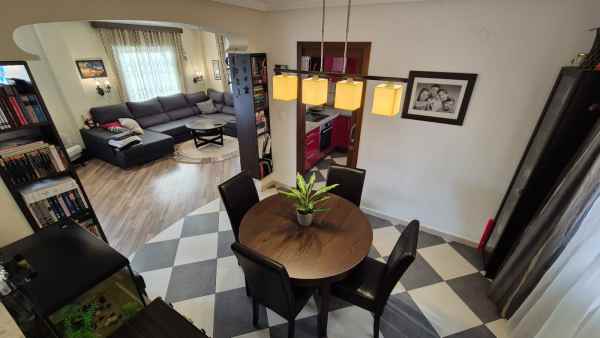 This large 195m2 house has on ground floor an independent kitchen open living and dining room with fire place, and 1 bathroom. On the upper floor there is 3 large bedrooms, sun terrace and 1 family bathroom. Downstairs basement has a pool table bar and storage space for all the family to have fun.