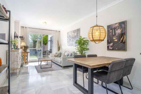 This is a 2-bedroom ground floor garden apartment. The apartment is in good condition with original kitchen which can easily be opened up if wished, dining and lounge area with direct access to the terrace. The terrace is an excellent spot as it offers full privacy and leads to the fully private garden overlooking La Concha mountain and the communal pool area. The master bedroom is spacious with en-suite bathroom and direct access to terrace. The guest bedroom is also of a good size and has a separate bathroom.