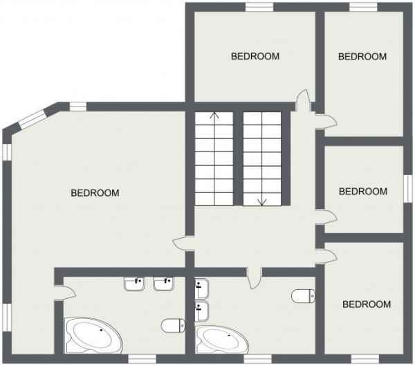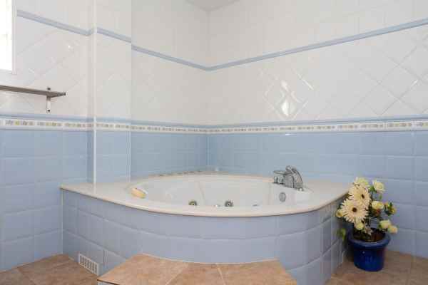 Five bathrooms, two of which have large whirlpool tubs.