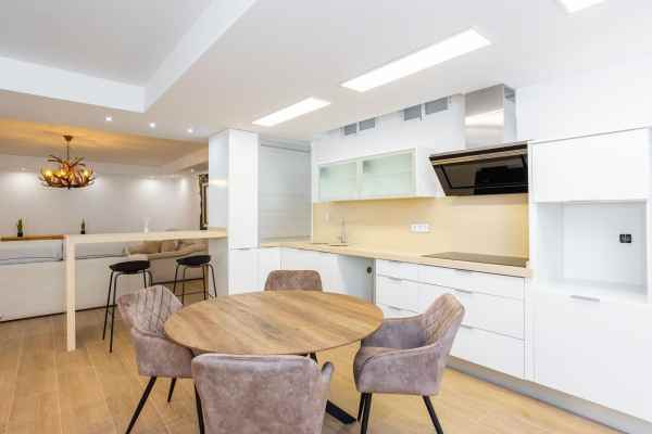The villa has a well-thought-out floor plan, generous light flows and lightly furnished spaces. There are five bedrooms, four bathrooms, a guest toilet and a living room and kitchen in an open plan. In addition, there is a spacious plot with a private pool, a terrace and a large sunny roof terrace.