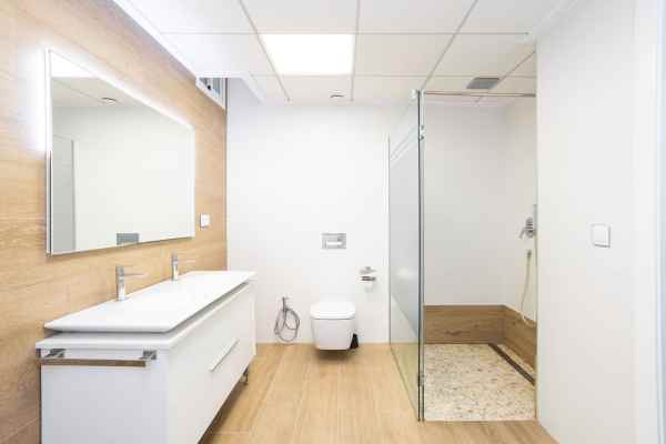 On the basement floor there is an open-plan kitchen and living room as well as two bedrooms and a bathroom.