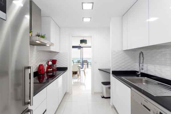 The apartment has a built area of approximately 124 m², there are three bedrooms, two bathrooms and a living room in an open plan to the spacious and modern kitchen. In addition, there is a large terrace and a generous roof terrace with a sunny location, sea views and a private jacuzzi.