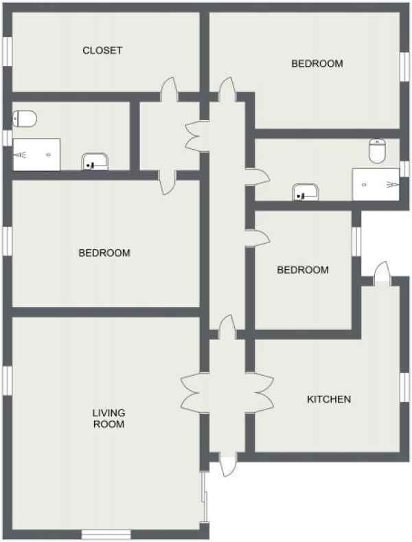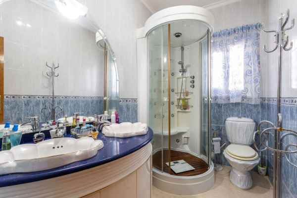 Three fresh bathrooms, both equipped with toilet, sink and shower.