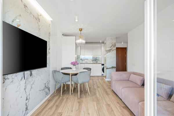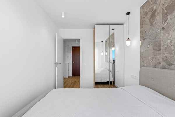 From the balcony you can glimpse the sea and feel the cool breeze in the morning as the sun rises over the horizon. The apartment has two spacious bedrooms and two elegant bathrooms, both tastefully renovated with modern touches. The interior design is carefully selected: designer furniture in natural tones, atmospheric lighting, mirrors that reflect the light and create a sense of space, and large, comfortable beds for a good night's sleep.