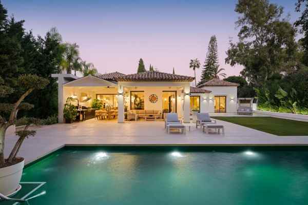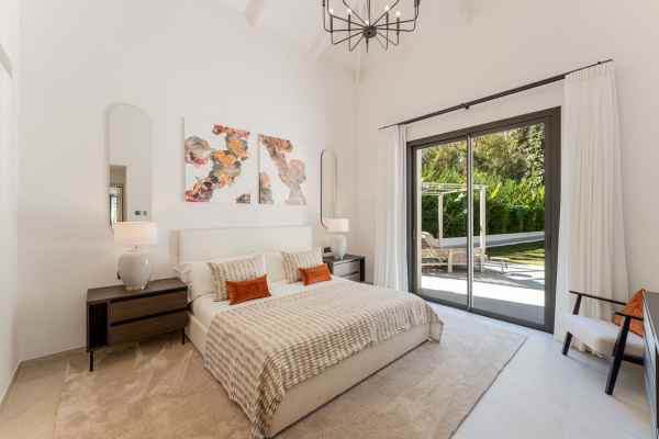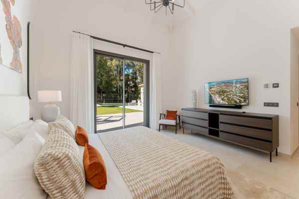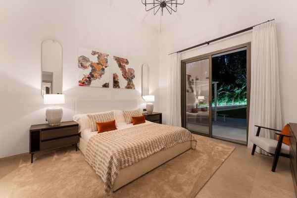 Elegant contemporary five bedroom villa for sale in the highly desirable neighbourhood of La Cerquilla, Nueva Andalucía. Renovated in 2025, this villa offers modern luxury living, functional design and elegant interior detailing.