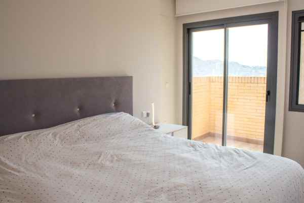 Discover this impressive duplex penthouse in one of the most emblematic buildings in Benidorm , a true gem of the luxury real estate market . Located on the 39th floor , this exclusive home offers incomparable panoramic views of the Mediterranean Sea , from Calpe to Alicante . With a constructed area of 210 m² , the property is distributed in three spacious bedrooms with built-in wardrobes , two full bathrooms ( one en suite ), a fully equipped independent kitchen with a utility room , and a bright living-dining room that connects to a private south-facing terrace , perfect for enjoying the sun all year round.