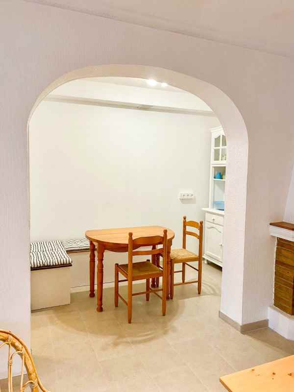 We present this charming 2-bedroom semi-detached bungalow located in the exclusive area of Cabo Roig , just 1 km from the beach . Renovated and decorated in an elegant Ibizan style , it stands out for its white tones and wooden details that bring warmth and light to each room. The property has a completely renovated bathroom , is sold furnished , and has a spacious kitchen , perfect for everyday use. In addition, it offers air conditioning , a storage room , and a front garden with a private terrace , ideal for enjoying the Mediterranean climate. Includes private parking and access to a well-kept communal pool , making this property a unique opportunity to enjoy the Costa Blanca in a quiet and distinguished setting.