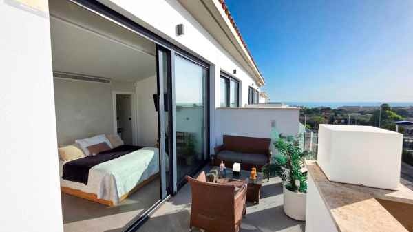 The spacious living-dining room offers a warm and bright atmosphere, with direct access to a private terrace offering stunning sea and mountain views , which can also be appreciated from two of the bedrooms . The fully equipped, open-plan kitchen is designed for those who value style and practicality. On the lower level, a multipurpose space with natural light from the ceiling offers multiple possibilities—it can be used as an additional bedroom, home theater, playroom, dressing room, or storage area.