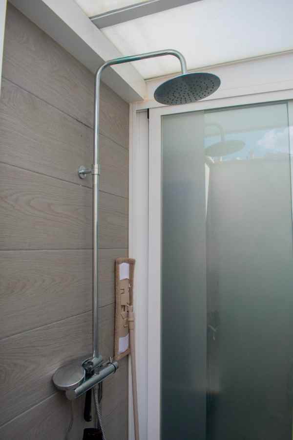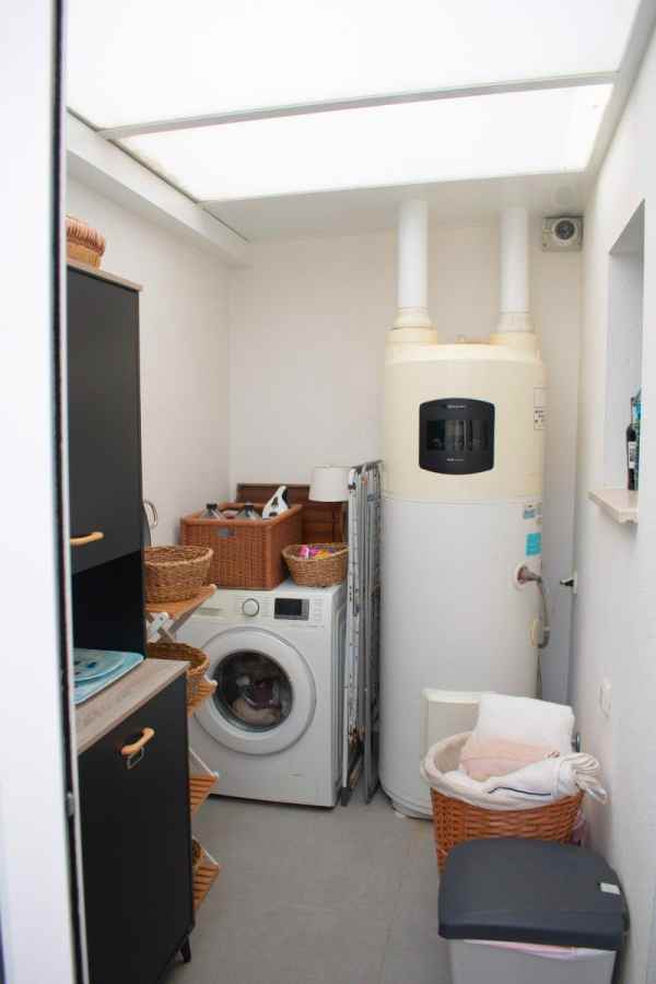 The home features built-in wardrobes , a separate laundry room , and an interior patio equipped with an outdoor shower , perfect for cooling off after a day at the beach. It is being sold fully furnished and equipped , ready to move into.
