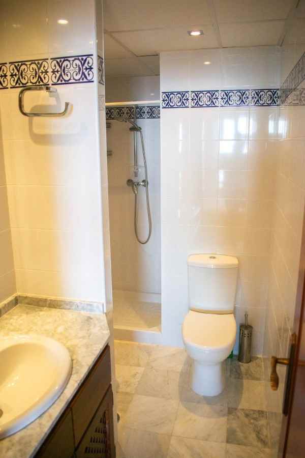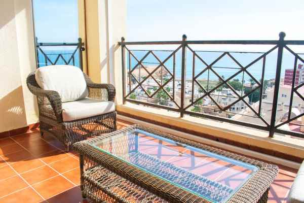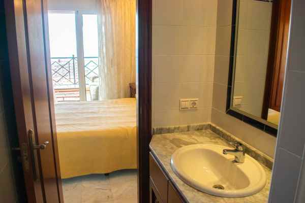 The home features three spacious bedrooms , all with sea views and built-in wardrobes . The master bedroom has an en-suite bathroom and direct access to a private terrace with panoramic views of the Mediterranean . The apartment also has another full bathroom, the perfect place to enjoy unique sunrises and the sound of the waves.