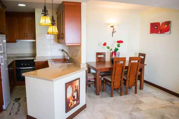 The spacious and bright living-dining room opens directly onto the main terrace , ideal for enjoying the Mediterranean climate year-round. The kitchen-dining room offers a functional and comfortable space, perfect for both everyday use and entertaining.