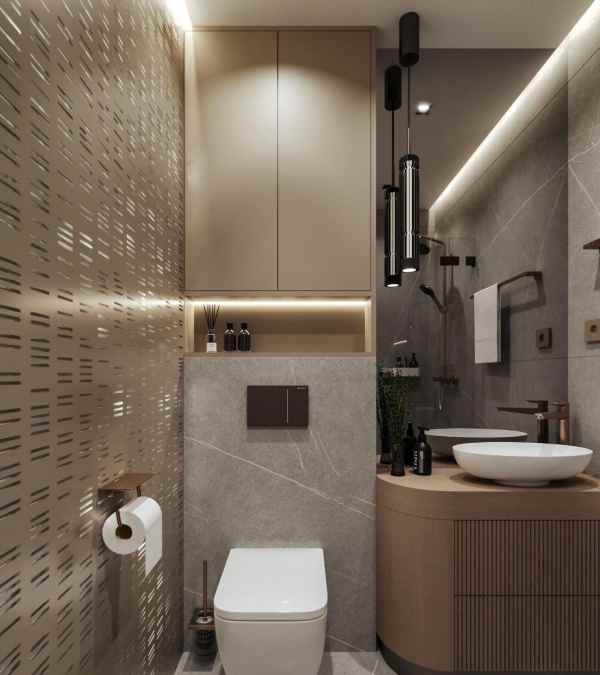 Inside, the 70 m² open-plan living, dining, and kitchen area welcomes abundant natural light, creating an atmosphere of spacious elegance. The home includes three serene bedrooms and three beautifully appointed bathrooms, with the master suite offering a designer freestanding bathtub and wall-mounted rainfall shower. Every detail reflects craftsmanship and harmony: Arklam stone countertops, a statement kitchen island, Miele premium appliances, and a built-in wine cooler complement Austrian-made furniture boards and tailor-made storage solutions. Warm Belgian flooring and Hansgrohe brushed bronze fittings add understated sophistication, while motorised curtain rails and shutters bring effortless comfort.