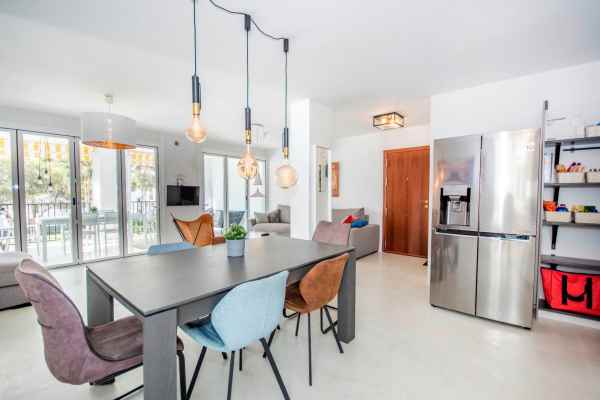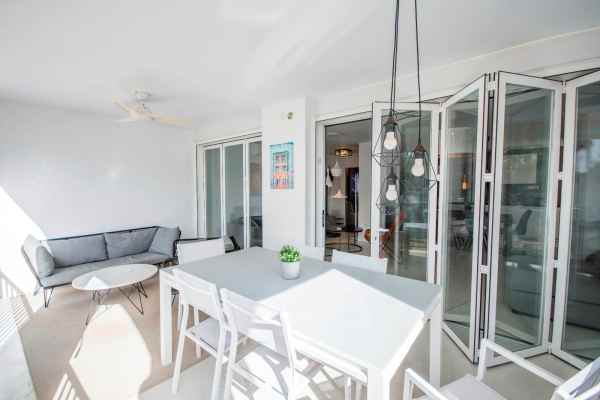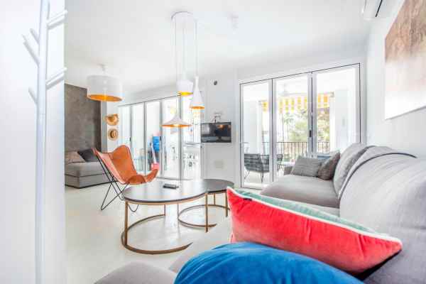 This elegant apartment, with a modernist touch, is located in the prestigious Parque Elviria urbanization in Marbella, Málaga, offering a bright and modern living experience. With three spacious bedrooms and two thoughtfully designed bathrooms, the interior reflects a contemporary style with high-quality finishes and a neutral color palette that maximizes the feeling of spaciousness and light.
