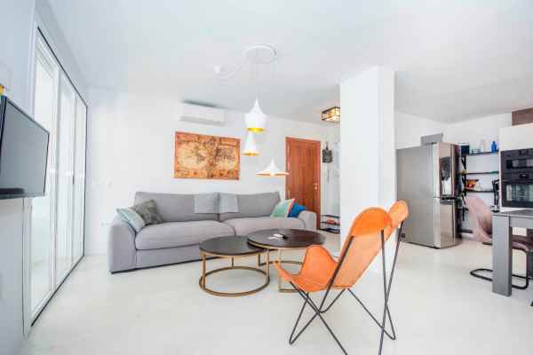 The living room, flooded with natural light thanks to large windows, opens onto a private terrace with panoramic views, providing the perfect setting to enjoy the warm climate of the Costa del Sol. The kitchen, equipped with modern appliances and elegant countertops, is a functional and aesthetically pleasing space for cooking enthusiasts.