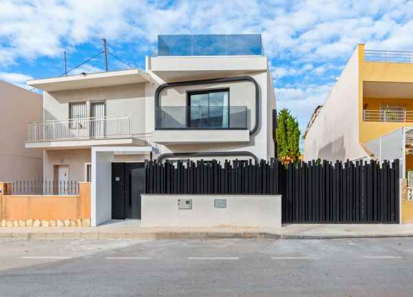 This exclusively designed villa is a true masterpiece and offers the perfect combination of luxury, privacy and comfort. Located in the prestigious area of Torre de la Horadada, known for its beautiful beaches, vibrant atmosphere and proximity to all important amenities, this home is an exceptional find. The villa is characterized by an elegant, modern design with great attention to detail. Inside, you'll find a beautifully designed indoor/outdoor kitchen, perfect for entertaining guests or enjoying family meals. The spacious living room creates a friendly atmosphere, perfect for guests to relax and entertain. On the first floor of the villa there are three spacious bedrooms and two elegant bathrooms, which offer plenty of space to rest and relax. The highlight of this home is the expansive solarium, which offers stunning views and plenty of space to enjoy the Mediterranean climate. Step out into the beautifully landscaped garden, where you'll find a private pool, perfect for cooling off in the hot summer months. A summer kitchen is the perfect addition and offers the best conditions for living and eating outdoors. This villa truly meets all your needs and is the perfect home for those looking for luxury and seclusion in one of the most desirable locations in southern Spain. Customize it and live your dreams in Torre de la Horadada. Located in Pilar de la Horadada, Torre de la Horadada is a beautiful coastal area on the southern Costa Blanca, close to the border with the region of Murcia. It is known for its relaxed yet elegant atmosphere, making it a sought-after destination for Spanish nationals and international buyers alike. Here are some attractions in the region: 1. Beaches : Torre de la Horadada is known for its beautiful beaches, including Playa de las Higuericas and Playa del Puerto. Sandy beaches and crystal clear waters make it an ideal destination for those looking for a quiet beach lifestyle, with ample opportunities for water sports, sunbathing and enjoying the Mediterranean climate. 2. Nature and Parks: This area is close to nature reserves such as the San Pedro del Pinatar Salt Flats Natural Park, known for its salt flats and wildlife, including birds such as pink flamingos. 3. Facilities: Torre de la Horadada offers a range of services, including shops, restaurants, cafes and supermarkets. It's a quieter alternative to some of the busier tourist areas, but offers everything you need for everyday life. The nearby center of Pilar de la Horadada also offers additional cultural and gastronomic opportunities. 4. Real Estate: The area is known for its luxury villas, modern apartments and townhouses, many of which are close to beaches or offer picturesque views of the Mediterranean Sea. This is an attractive location for those looking for modern and luxurious properties in a quiet coastal area. 5. Transport: Torre de la Horadada is well connected and has good access to the AP-7 motorway, which provides quick access to nearby cities such as Murcia and Alicante. Murcia-San Javier Airport is just a short drive away, making international travel easy. 6. Local Events: Pilar de la Horadada, including Torre de la Horadada, hosts various cultural events throughout the year, including festivals, musical performances and traditional celebrations that add to the charm of the region. Overall, Torre de la Horadada is an ideal location for those looking for a quiet coastal lifestyle, with access to natural beauty and modern amenities, while still being close to other major attractions on the southern Costa Blanca.