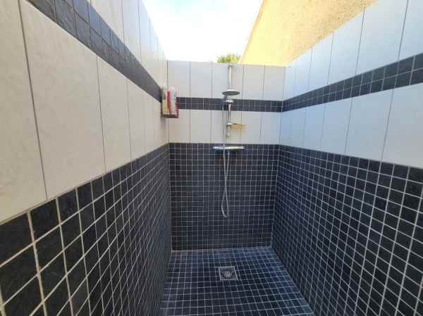 The double glazing system contributes to an ideal indoor climate, while the satellite installation keeps you connected to the outside world. For warm days, the outdoor shower is perfect after enjoying a refreshing swim in the private pool.