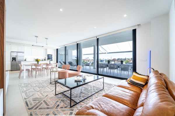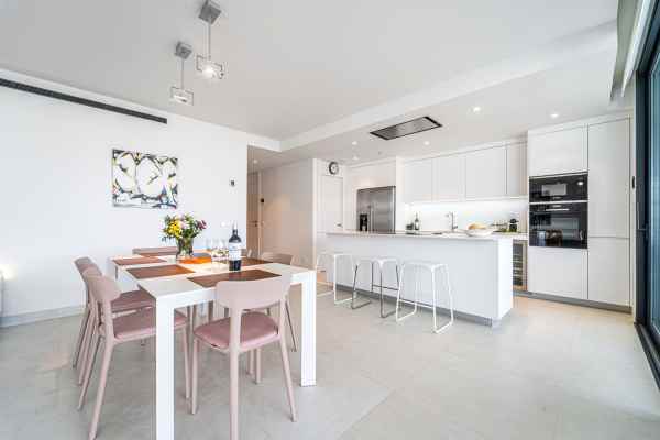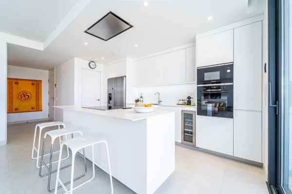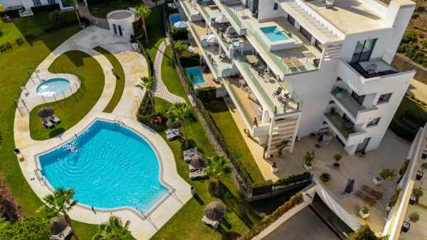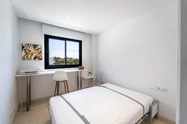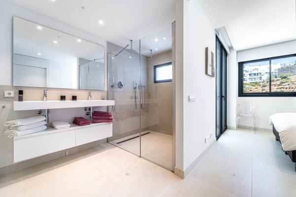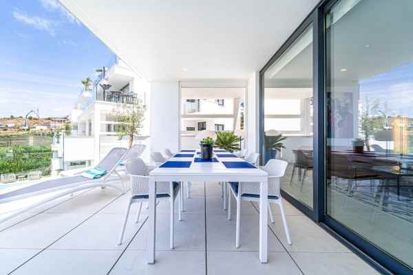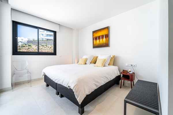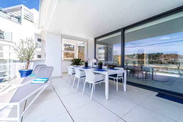 Luxury west facing apartment, in the exclusive urbanization of Higuerón West, with 3 bedrooms, 2 bathrooms, spacious living-dining room, open plan kitchen fully furnished and equipped with electricial appliances from Bosch including american fridge/freezer and wine cooler, laundry area with washing machine/dryer, large terrace of 54m2 with garden views. Master bedroom with walk-in closet, open plan bathroom and access to a small terrace of 5m2. Air conditioning hot and cold, video intercom, domotic system, built-in wardrobes in all bedrooms and hall entrance, electric awnings on main terrace and electric curtains in living room, pre-installation alarm system, floor heating in both bathrooms. Includes two parking spaces and one storage room.