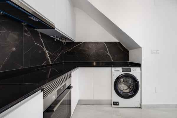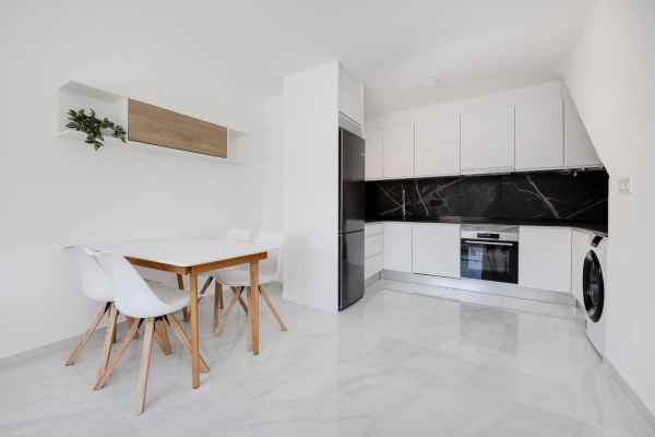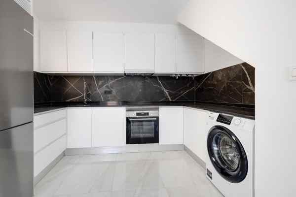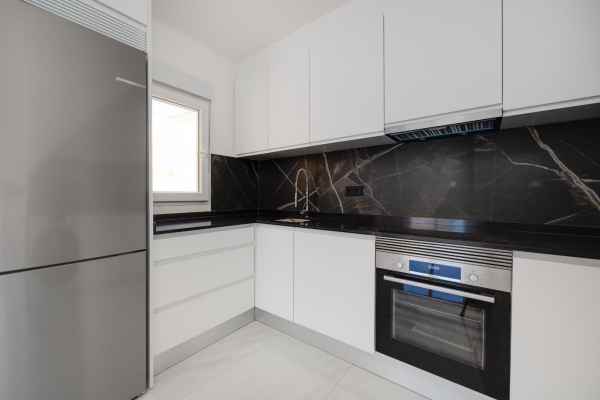 The apartment offers two bedrooms with built-in wardrobes and a large, fully equipped bathroom. Everything is brand new, including PVC windows for optimal energy efficiency, as well as air conditioning and ceiling fans for comfort throughout the year.