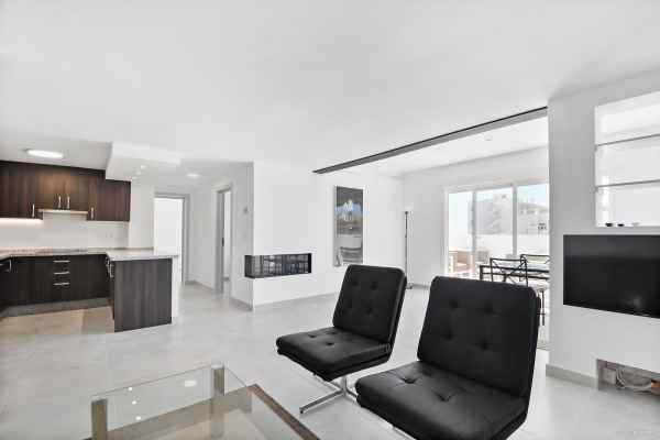 The large living room serves as the natural gathering point, featuring generous space for both dining and lounge areas. Expansive windows fill the room with natural light and open up to a wonderful 40 sqm terrace — perfect for sunny breakfasts, open-air dinners, and cozy evenings with the sea breeze.