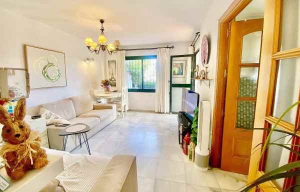 This charming ground-floor apartment enjoys an excellent location, just a short walk from the beach and all amenities, including restaurants, supermarkets, bus stops and a pharmacy . Set within a tranquil, Andalusian-style urbanisation, the property offers a welcoming lounge, a semi-open kitchen, two bedrooms, and one bathroom, along with pleasant views over the communal gardens and pool.