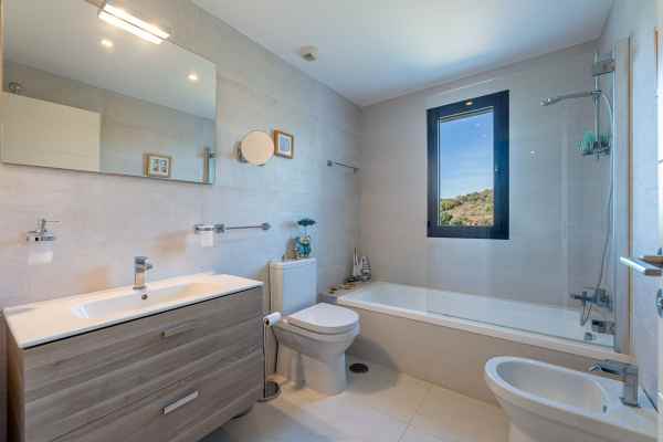 The bright and airy living/dining area opens onto a beautiful terrace with dining and lounge spaces, perfect for enjoying panoramic sea and mountain views. On clear days, you can even admire the spectacular silhouettes of Gibraltar and North Africa. With sunshine all day long, it’s ideal for year-round living: enjoy sunrises over Estepona town and unforgettable sunsets over the mountains.