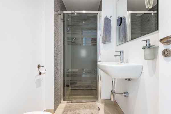 A few steps further in, you reach the bedroom area on the left. There are three well-sized bedrooms; the master bedroom features an en-suite bathroom, while the other two bedrooms share a second bathroom.
