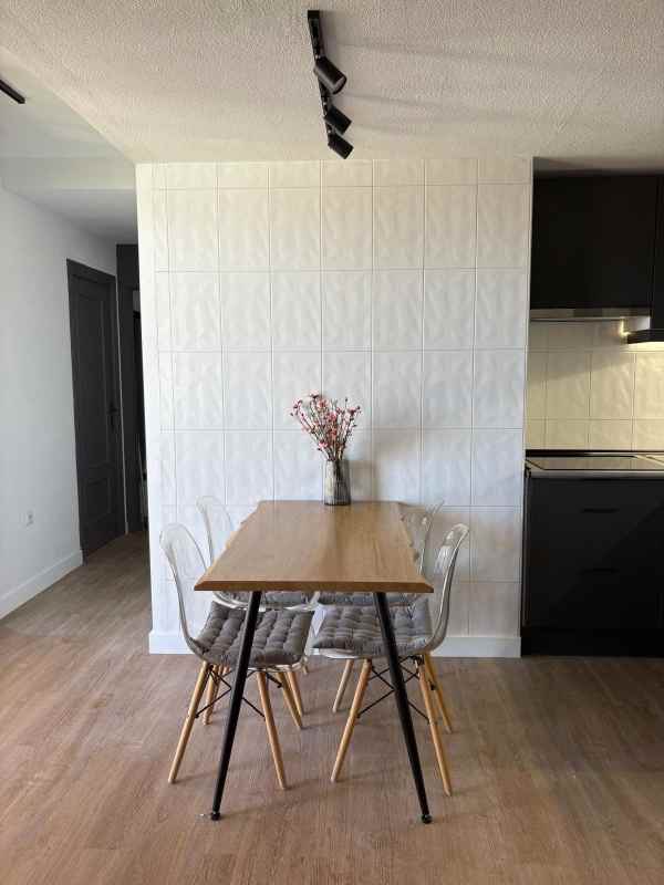 The apartment is located on the fifth floor with an elevator and is equipped with air conditioning for both cooling and heating, providing a pleasant indoor climate all year round.