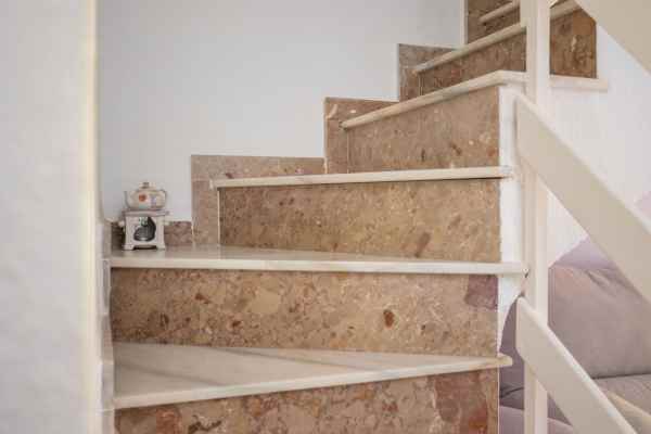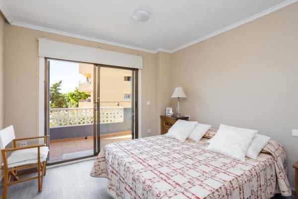 One floor up there are two bedrooms and a shared bathroom. The master bedroom is furnished with a double bed and has access to a private balcony in a nice location. The second bedroom is also furnished with a double bed. Both bedrooms have built-in wardrobes.