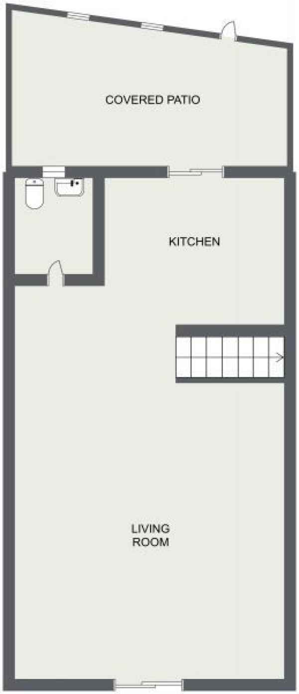 You are welcomed into the front patio, where there is plenty of space for outdoor furniture or sun loungers. On the entrance floor there is a living room with plenty of space for a seating area and dining area, a well-proportioned kitchen with good storage and work surfaces, and a guest toilet equipped with a toilet and sink. From the kitchen you can reach the covered patio at the back.