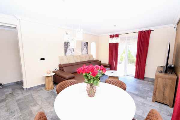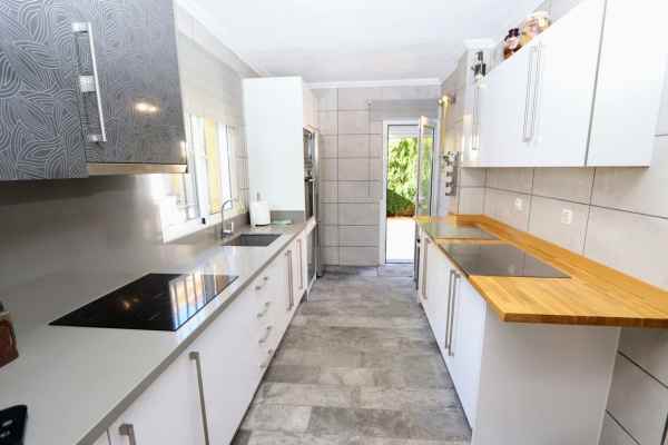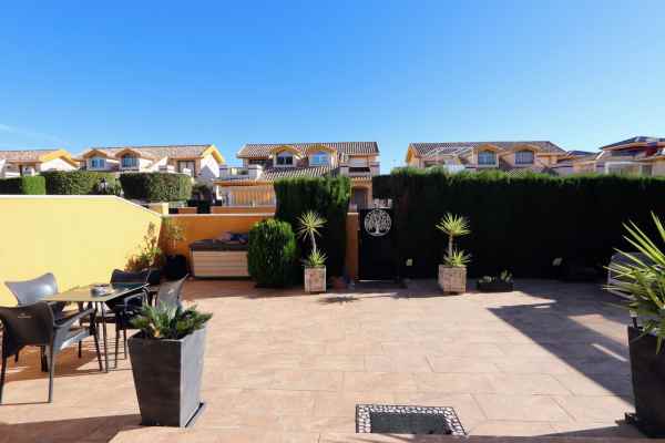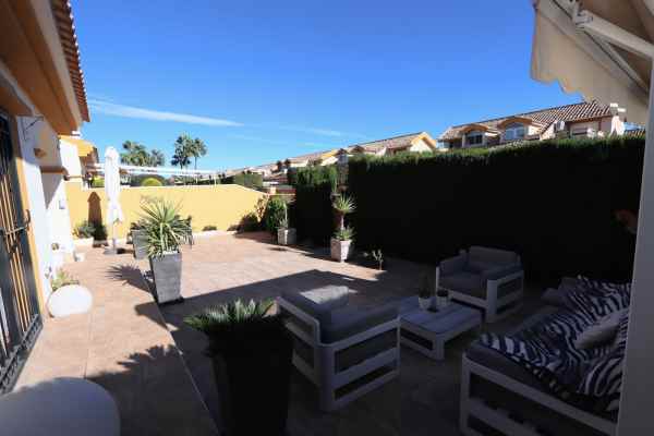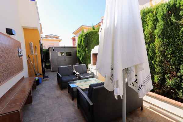 This renovated property features three bedrooms with fitted wardrobes, two bathrooms, a spacious living/dining area, and a fully fitted kitchen. Additional benefits include air conditioning, private terraced areas, BBQ, off-road parking, communal parking, a terrace off the master bedroom. The property is within a gated community which offers a communal swimming pool and gardens